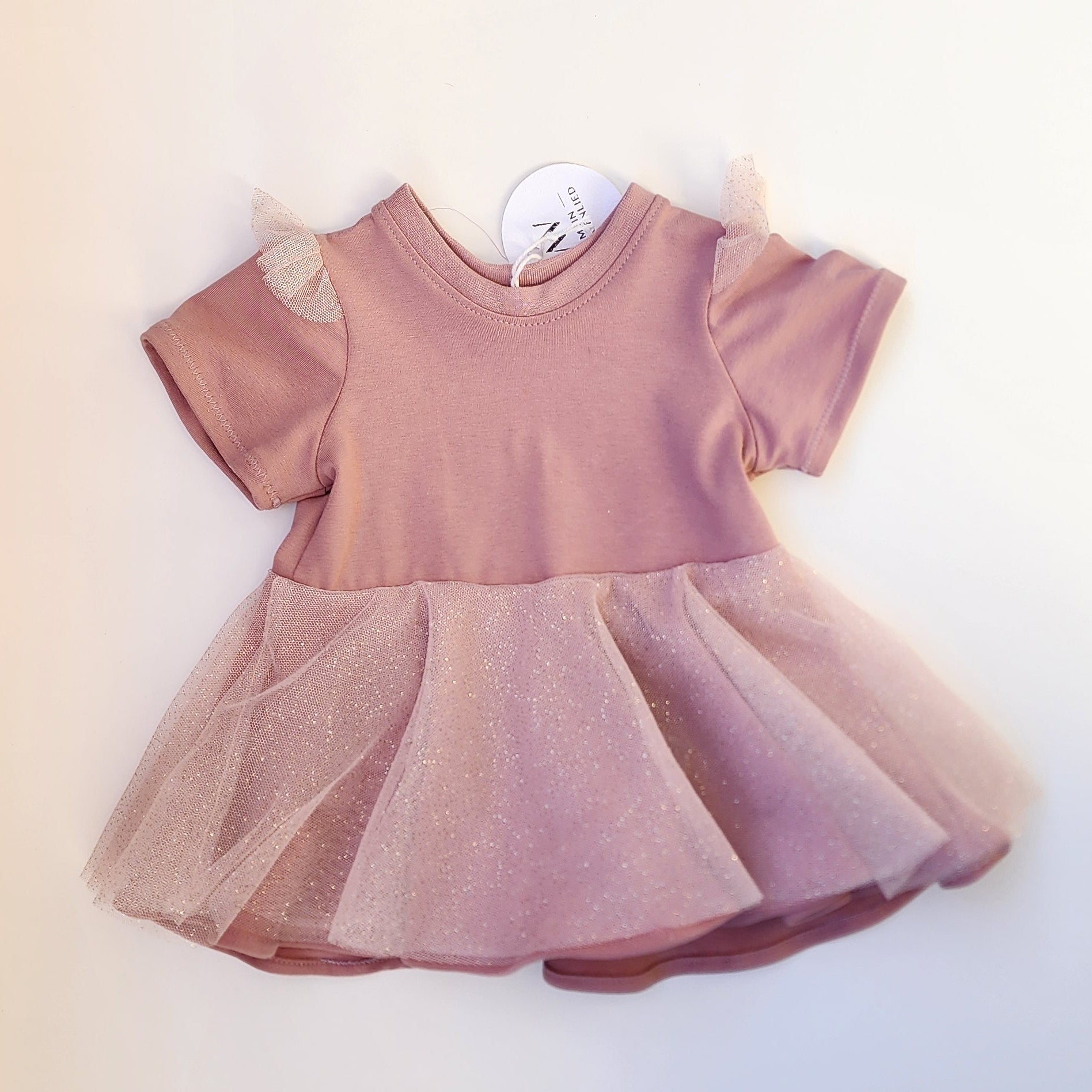 Dieses feine Tüllkleidchen aus weichem Jersey mit rosa Glitzertüll ist ein kleiner Traum. Perfekt als Geschenk zur Geburt oder für Neugeborenen Fotos.