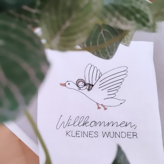 Babydecke aus 100% Leinen mit Liebe bestickt.