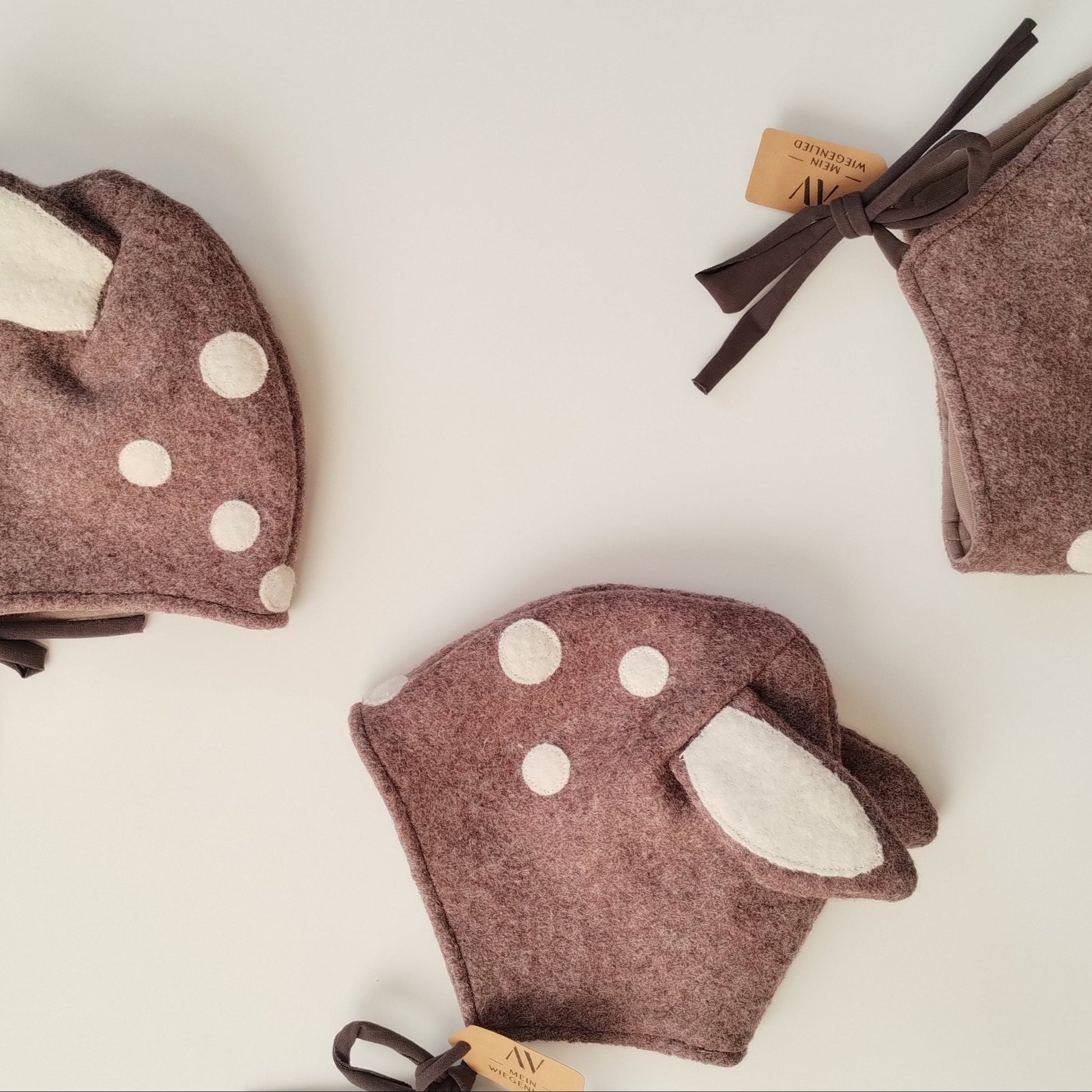 Diese Walkmütze bringt die Magie des Waldes direkt in Ihren Alltag. Sie lässt sich perfekt mit dem Winteroutfit der Kleinen kombinieren und sorgt für einen harmonischen, warmen Look, der Stil und Funktionalität vereint.