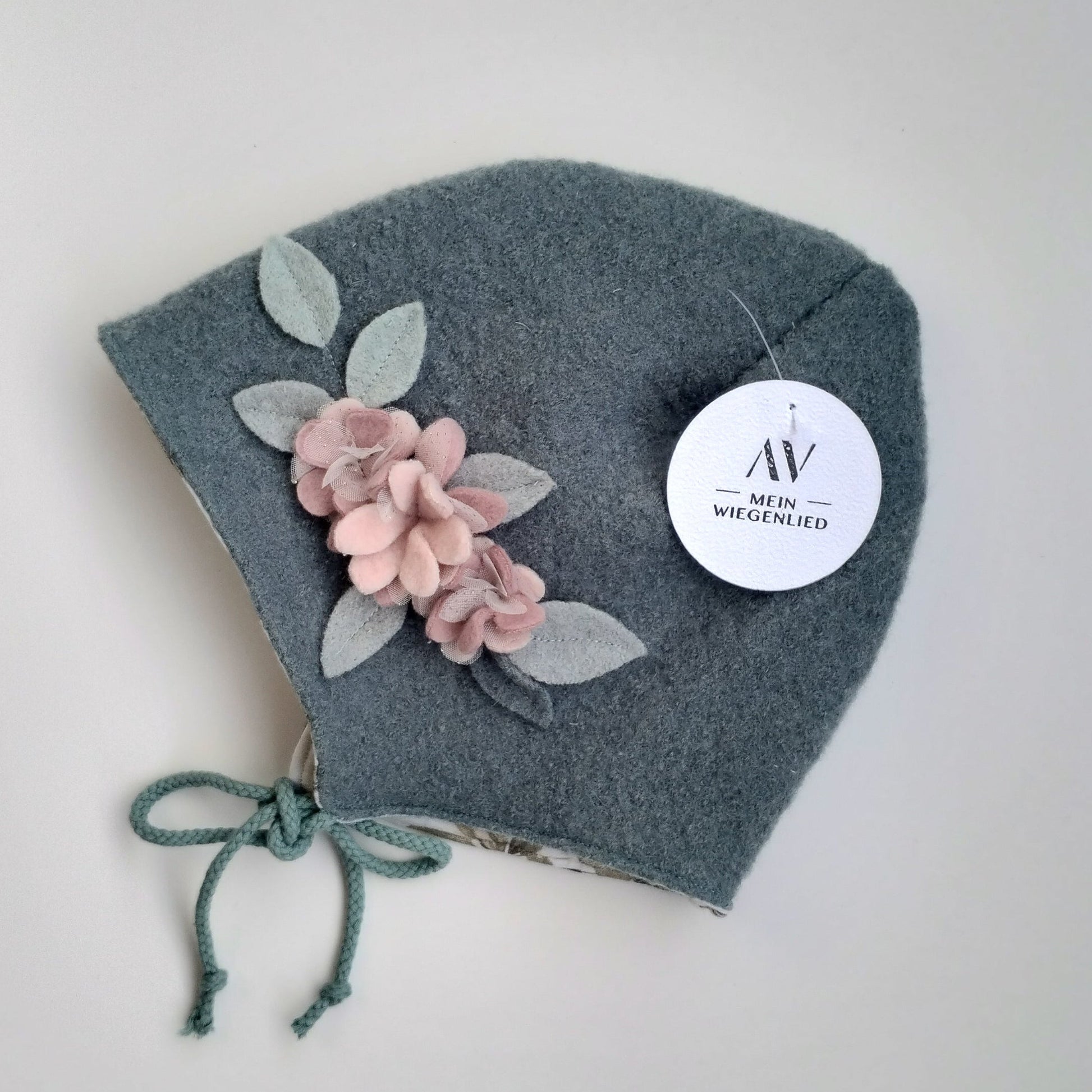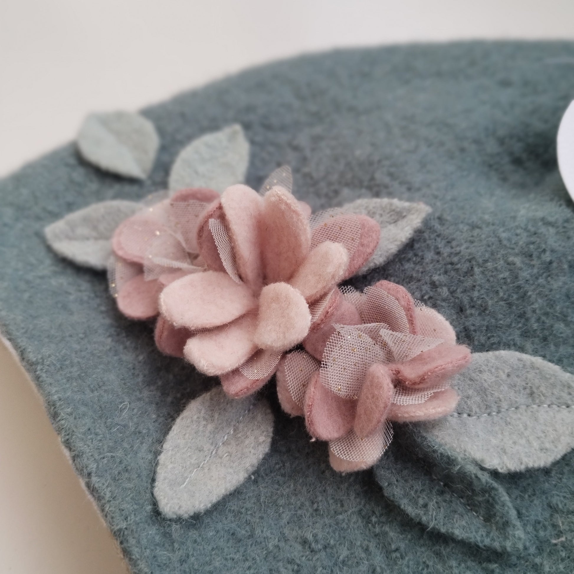 Die kunstvoll gestalteten, dreidimensionalen Blumenapplikationen verleihen der Walkmütze eine lebendige Textur und machen sie zu einem einzigartigen Blickfang. Jedes Detail wurde mit viel Liebe erdacht und umgesetzt, wodurch sie sowohl funktional als auch ästhetisch überzeugt.