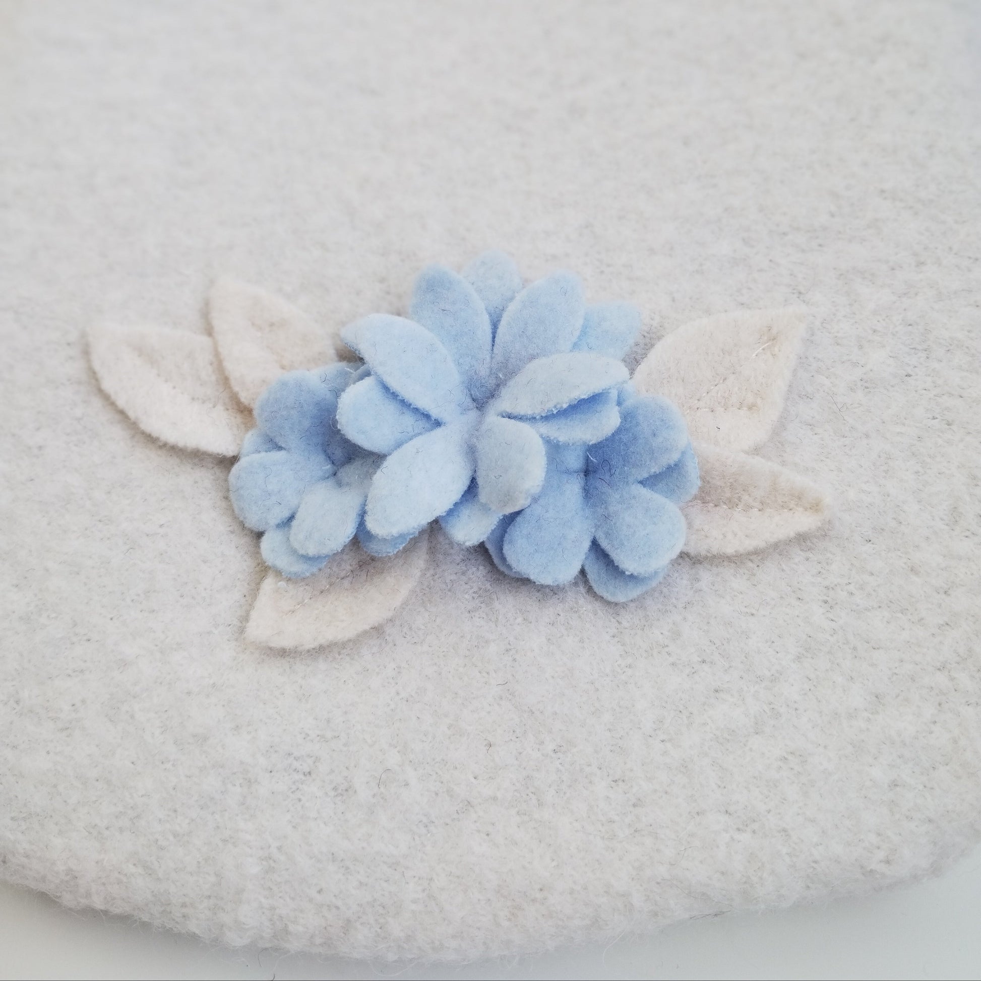 Eine zart gestaltete cremefarbene Wärmflasche mit hellblauen Blumenapplikationen und aus hochwertigem Wollstoff. Einfach perfekt als Geschenk und so schön, dass Sie sie bestimmt nicht mehr im Schrank verstauen müssen.