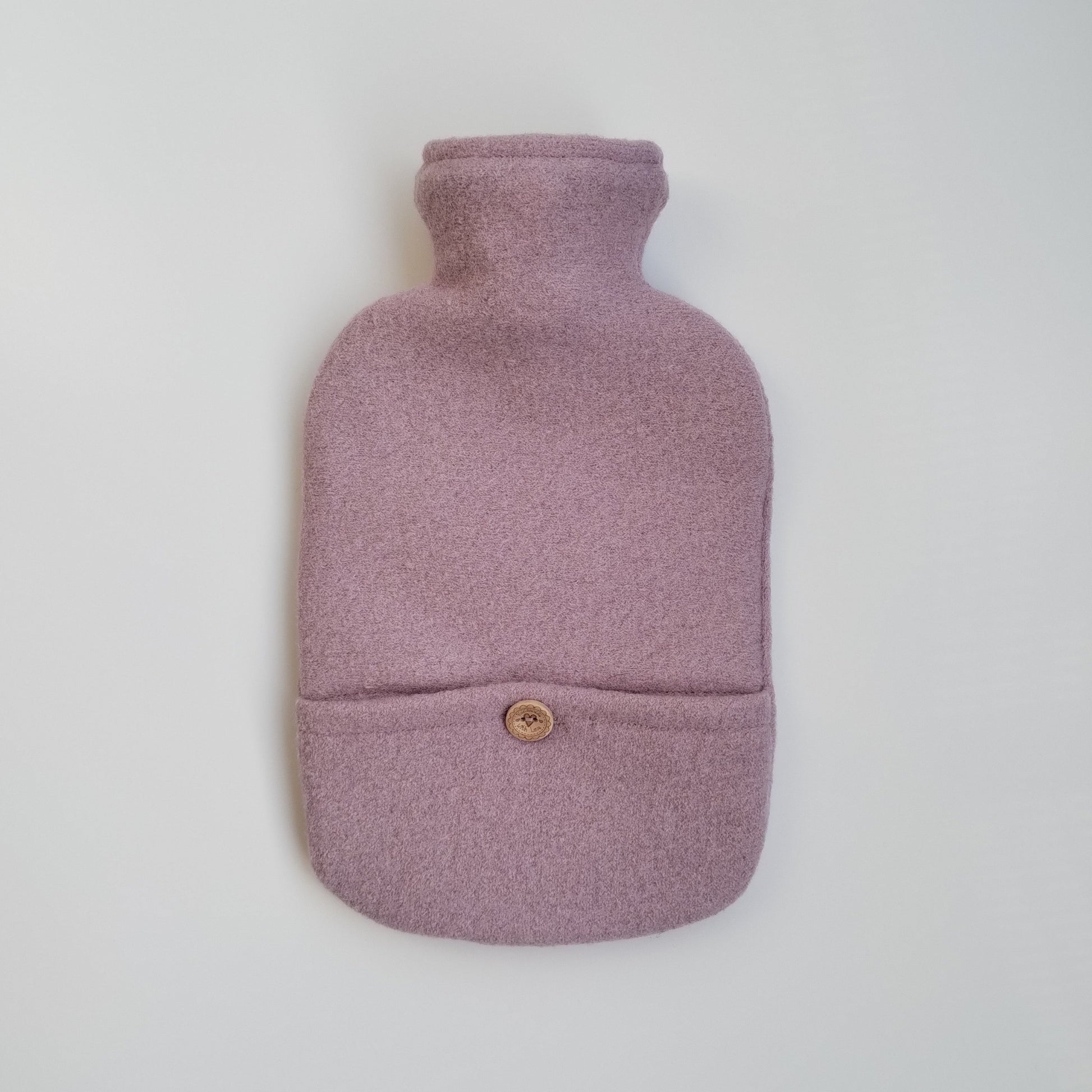 Eine zart gestaltete Wärmflasche in hellem lila mit Blumenapplikationen und aus hochwertigem Wollstoff. Einfach perfekt als Geschenk und so schön, das Sie sie bestimmt nicht mehr im Schrank verstauen müssen.