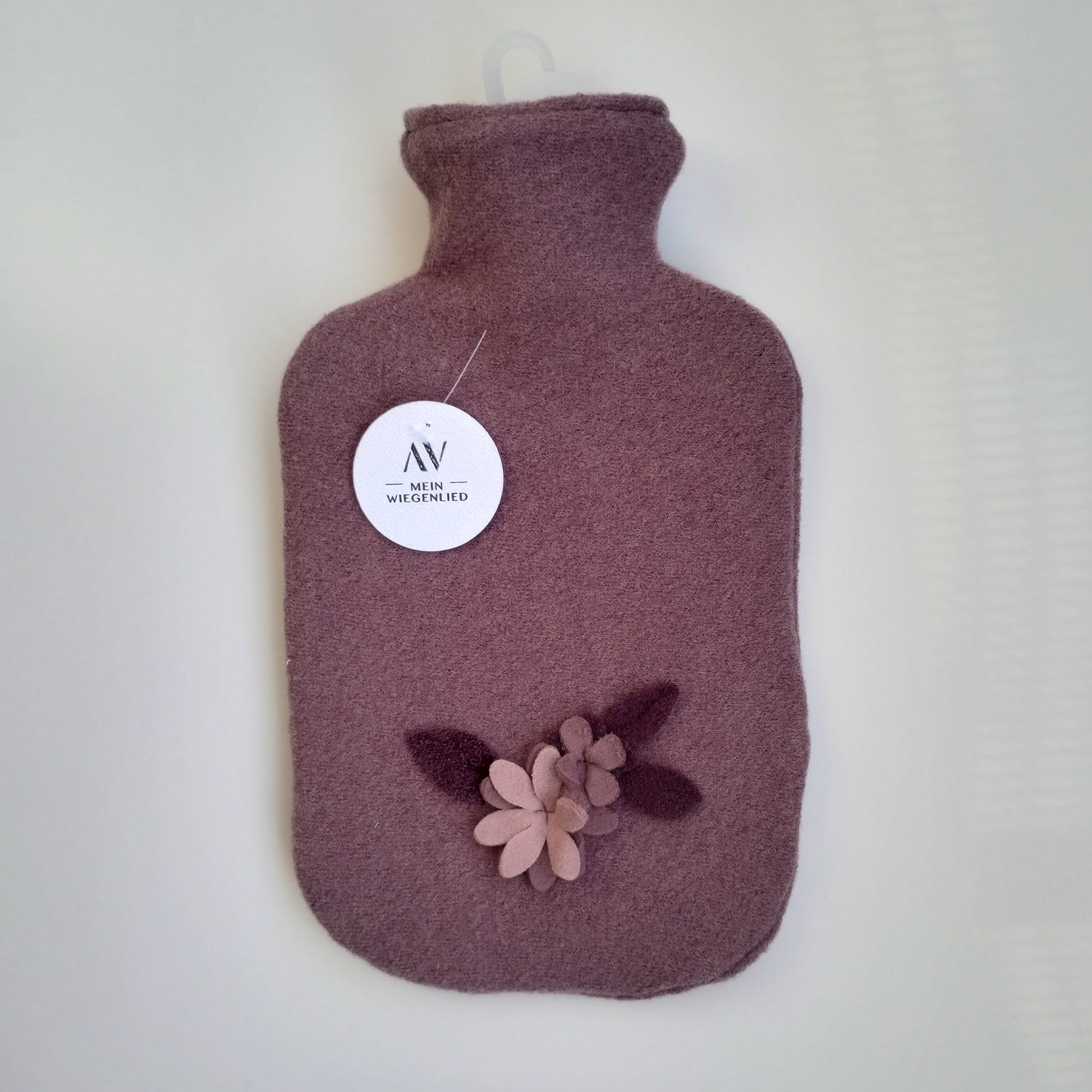 Eine zart gestaltete Wärmflasche in dunklem lila mit Blumenapplikationen und aus hochwertigem Wollstoff. Einfach perfekt als Geschenk und so schön, das Sie sie bestimmt nicht mehr im Schrank verstauen werden.