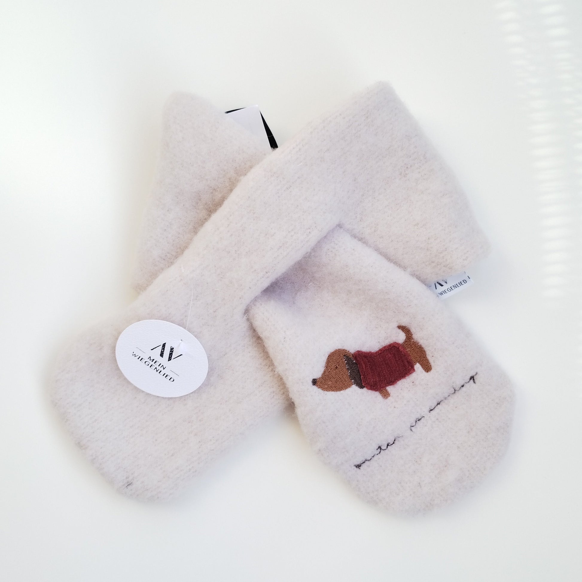 Ein Schal aus weicher Merinowolle mit dem kleinen Winterdackel, niedlicher und mit mehr Deluxe geht es kaum. Der Schal passt sich perfekt dem Hals an und lässt sich vorne an der Brust auch unter die Jacke stecken. So bleiben die Babys und Kinder bei jedem Wetter winddicht und warm ohne sie einzuengen.